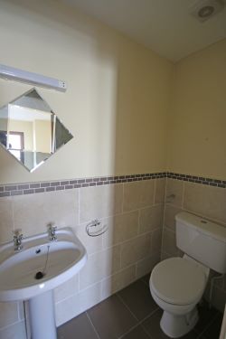 Tiled flooring. Half tiled walls. Bath. Shower and tiled cubicle. WC, WHB. Radiator.