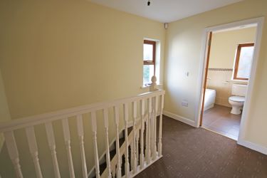 Tiled flooring. Radiator. High and low level units. Extractor fan. Stainless steel sink. Radiator. Sliding door to rear garden. First Floor Landing: 3m x 2.4m Carpet flooring. Attic Acces. Hotpress with shelving.
