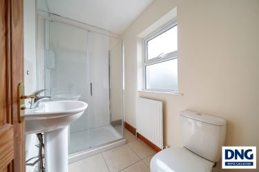 Tiled Floor | White WC & WHB | Show Cubicle with Electric Shower | Window To Front