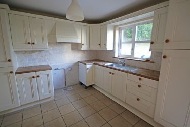 Tiled flooring. High and low level units. Tiling in between. Stainless steel sink. Double doors to rear.