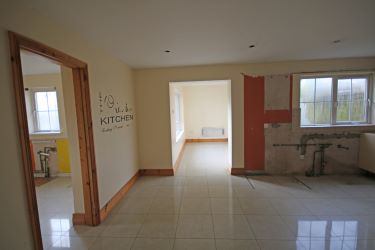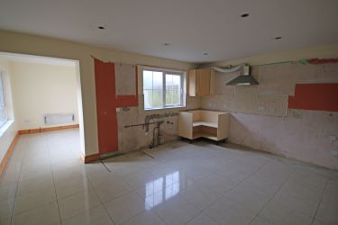 Kitchen removed. Tiled flooring. Opening to conservatory.