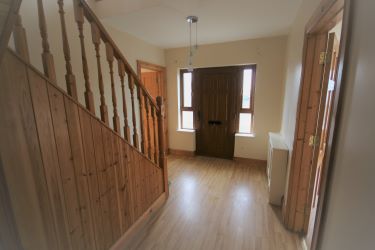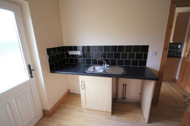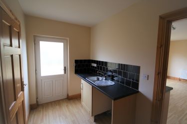 Laminate flooring. Low level units tiled above. Stainless steel sink. Radiator. Space for washing machine & tumble dryer. Door to rear. Large hot press.
