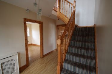 PVC entrance door with glass side panels. Laminate flooring. Understairs storage cupboard. Smoke alarm. Radiator.