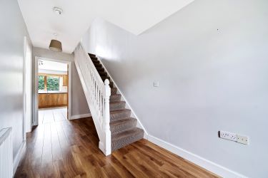 Laminate flooring. Burglar alarm. Radiator. Hardwood entrance door with glass side panelling. Smoke alarm.